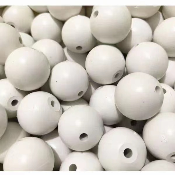 Hohle Kunststoffkugeln bestehen aus Polypropylen -Kunststoff und werden zu kugelförmigen Formen gebildet. Entlang des gesamten Umfangs der Kugelmitte befindet sich ein Verstärkungsring, wobei zwölf Kugellappen über und unter dem Ring entlang der zentralen Achse angeordnet sind. Sie eignen sich für Deaerationstürme für Kohlendioxid und andere Geräte wie Kontaktreaktionstürme.